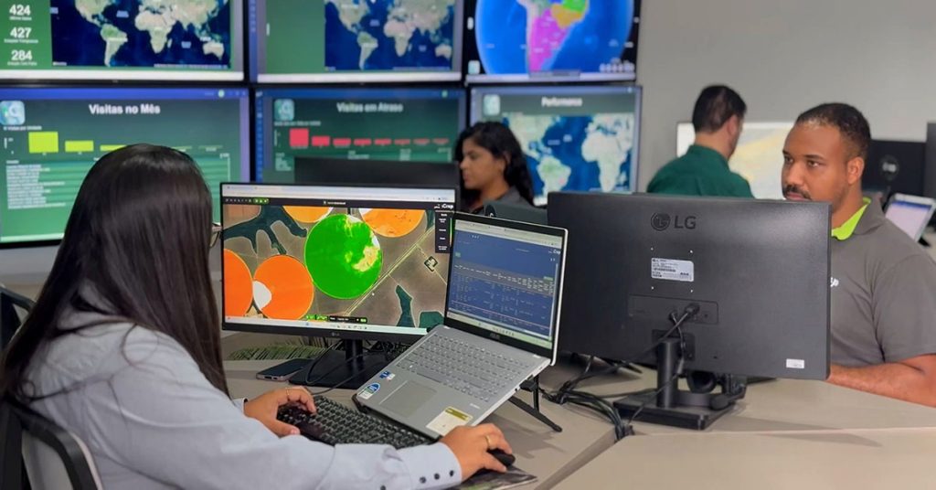 O monitoramento de plantações é feito por satélites que monitoram as áreas, especialistas acompanham os dados e buscam antecipar eventuais problemas e manter a qualidade da irrigação. Em caso de necessidade, eles recorrem às equipes de campo que se deslocam até o eventual ponto para prestar assistência ao produtor rural.