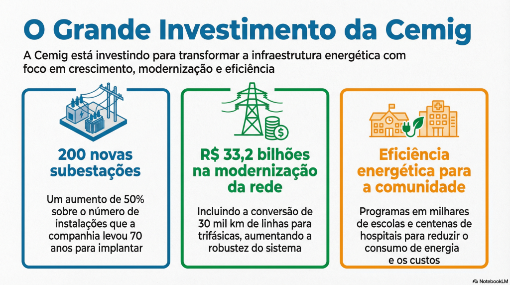 Ao todo, R$ 59 bilhões estão sendo investidos no ciclo 2019-2029, o maior da história de mais de sete décadas da companhia. O objetivo principal é modernizar a rede elétrica de Minas Gerais, garantindo fornecimento de energia mais estável, seguro e eficiente.