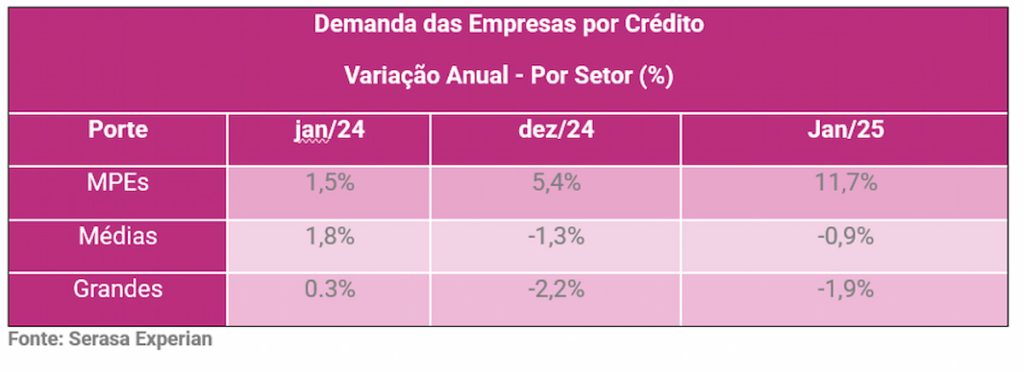 A elevação pela demanda por crédito registrada em janeiro no Brasil foi impulsionada exclusivamente pelas Micro e Pequenas empresas, enquanto as Médias e Grandes companhias apresentaram queda.