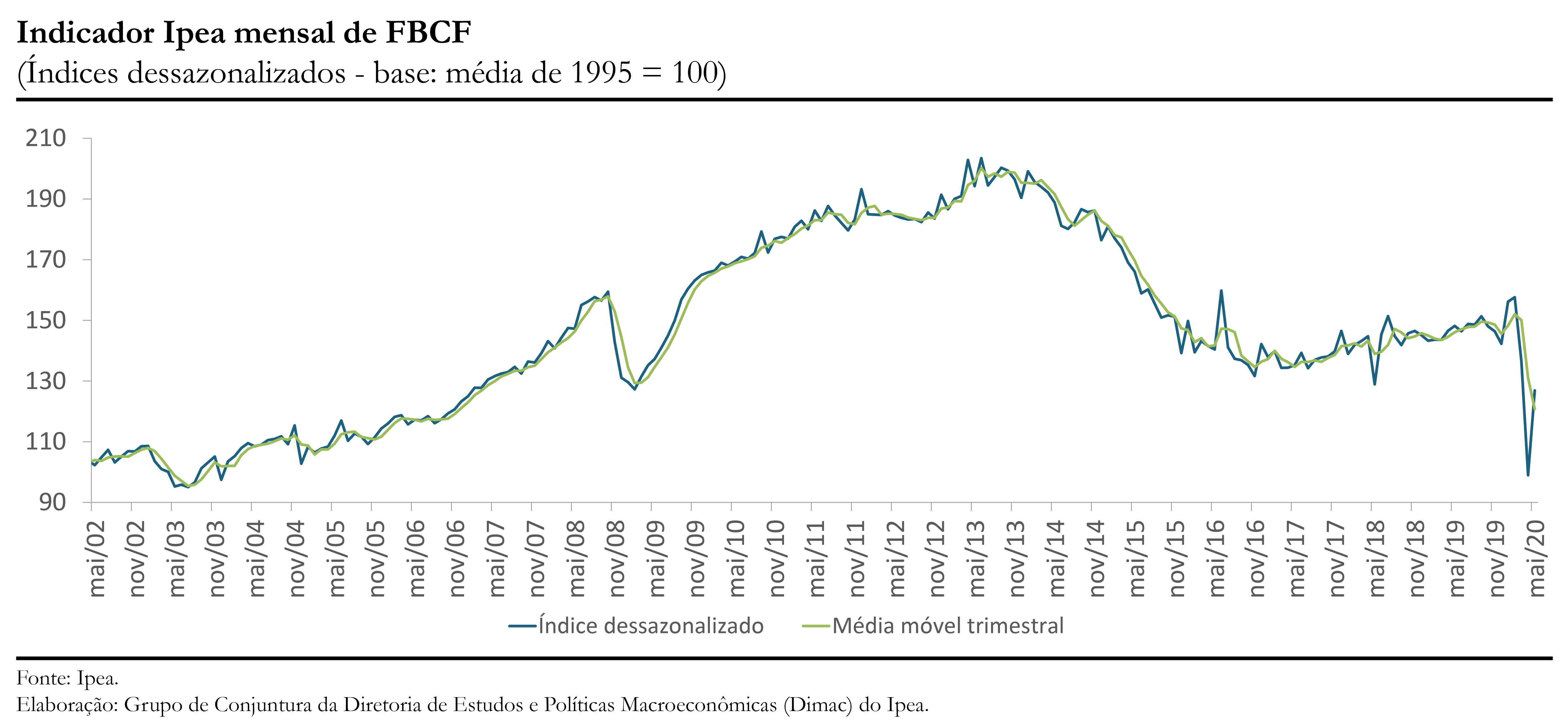 Segundo o Instituto de Pesquisa Econômica e Aplicada (Ipea), por meio do indicador mensal de Formação Bruta de Capital Fixo (FBCF) – composto por máquinas e equipamentos, construção civil e outros ativos fixos -, em maio, o setor de obras em todo Brasil cresceu 14,1% em relação a abril, mas encolheu 16% em comparação com o mesmo período em 2019. Os dados são da última atualização do índice divulgado pelo FBCF.