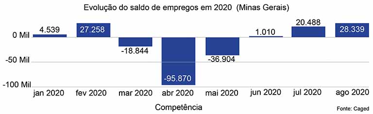 O saldo de empregos formais permaneceu positivo em agosto no Estado, segundo os dados do Cadastro Geral de Empregados e Desempregados (Caged), do Ministério da Economia. No oitavo mês de 2020, foi registrado superávit de 28.339 vagas de trabalho em Minas Gerais, indicando o terceiro resultado positivo consecutivo, após três meses seguidos de déficit na geração de vagas, em consequência da crise imposta pela pandemia do novo coronavírus.