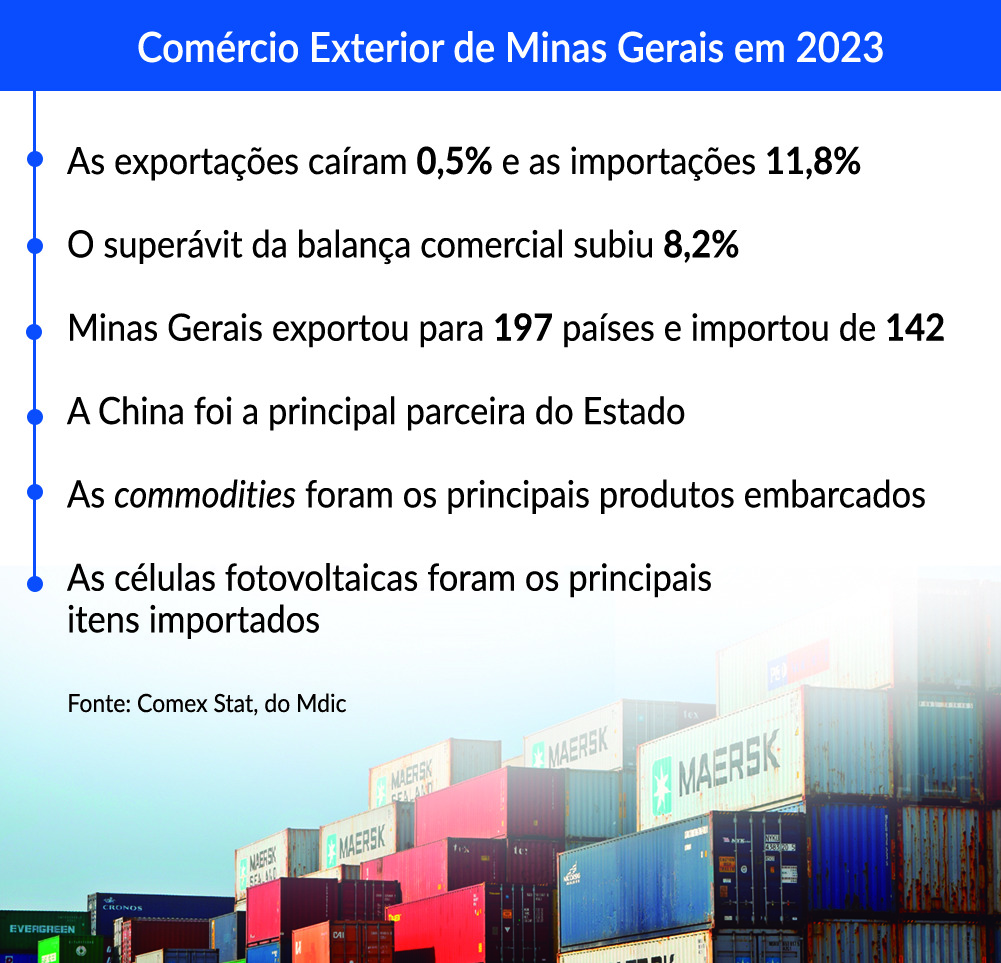 Superávit da balança comercial de Minas Gerais cresce em 2023