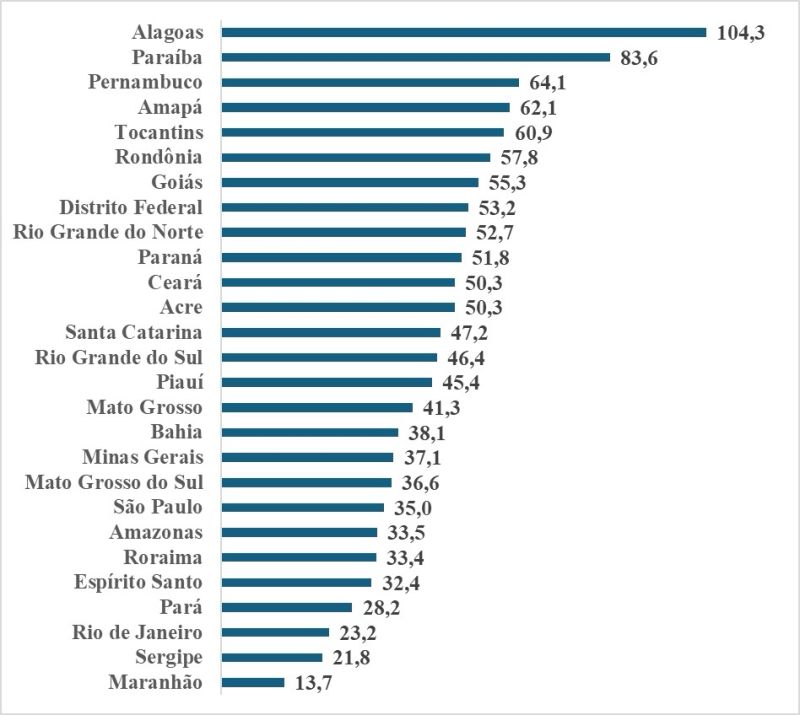 Com base nos dados apresentados, o especialista avalia que há três mecanismos que explicam a diferença entre a taxa média estadual e a nacional. A primeira é a composição da cesta de itens exportados pelo Estado, com o café representando cerca de um terço das exportações mineiras aos Estados Unidos. “Isso puxa a alíquota efetiva para cima”, diz.