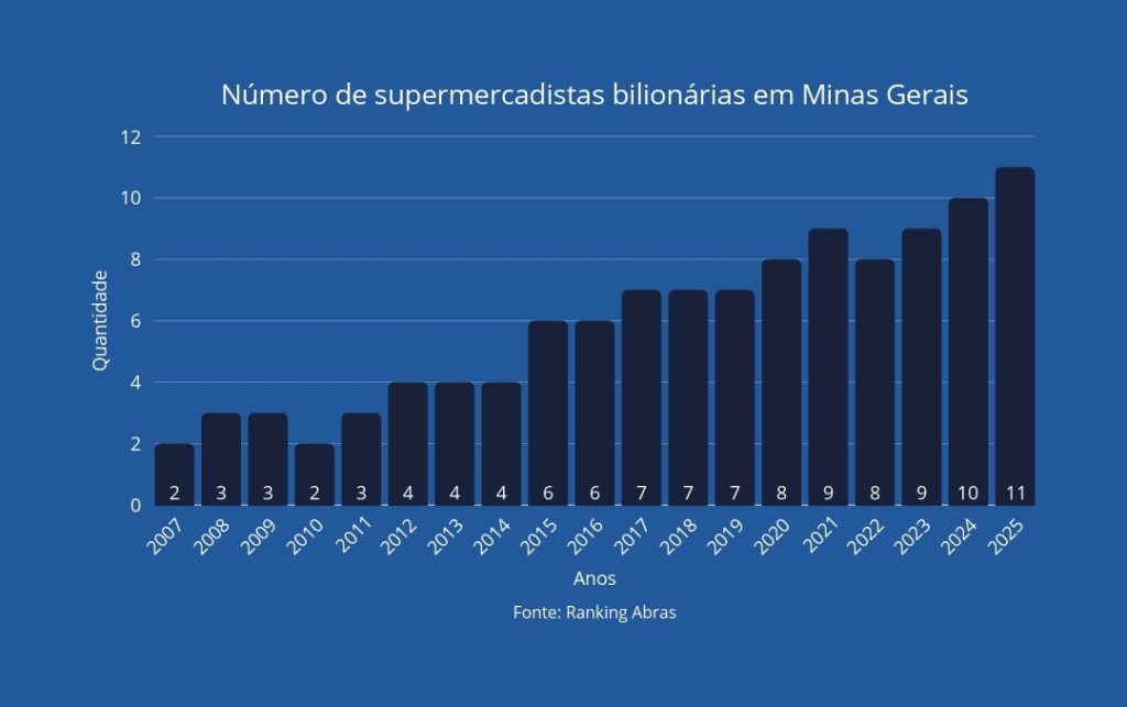 O número de empresas do varejo supermercadista de Minas Gerais com faturamento igual ou superior a R$ 1 bilhão segue em expansão nos últimos anos. De acordo com as edições mais recentes do Ranking Abras, esse grupo saltou de seis, em 2015, para 11 companhias bilionárias no ano passado, o que representa crescimento de 83,33% no período.