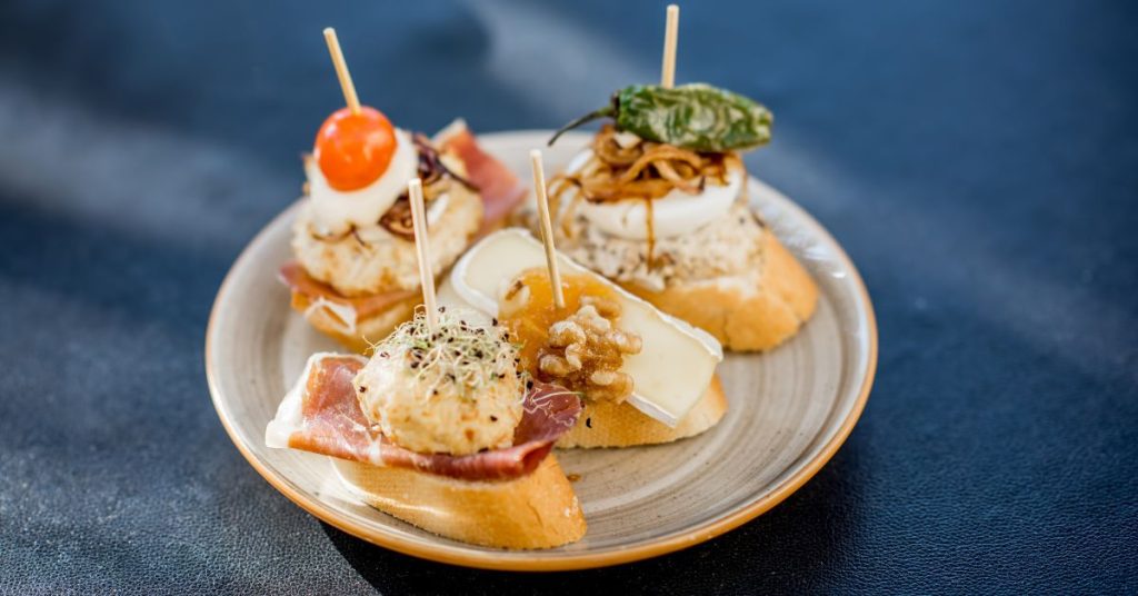 A culinária espanhola é muito diversa e tem entre os seus pratos mais emblemáticos os tradicionais pinchos, que são pequenos petiscos servidos em pedaços de pão com variadas coberturas. Eles podem incluir desde simples combinações de queijo e presunto até criações mais elaboradas. Os pinchos são parte fundamental do “tapeo”, a tradição de ir de bar em bar, refletindo a criatividade culinária e o espírito social da Espanha.