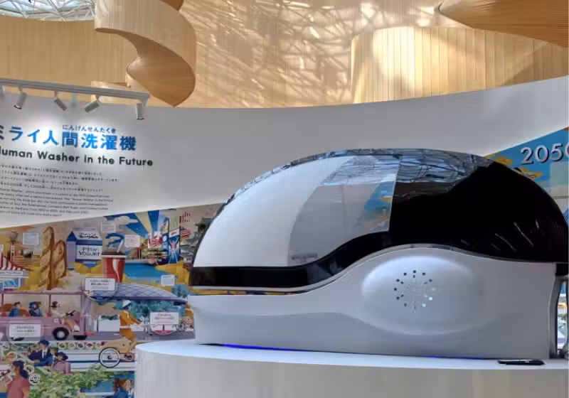 Conhecida como “Mirai Human Washing Machine”, esta inovação foi apresentada na Expo Osaka 2025. O dispositivo realiza um banho completo em meros 15 minutos, tudo isso através de microbolhas e uma leve névoa, sem necessidade de sabonetes.