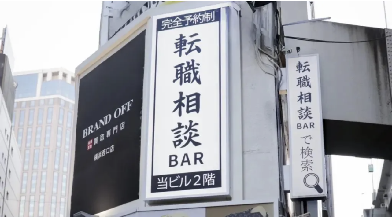 À primeira vista, o estabelecimento parece apenas mais um bar entre tantos próximos às grandes estações de trem japonesas. Mas, ao cruzar a porta, o cliente descobre que ali o cardápio principal não é álcool, e sim conversa, reflexão e orientação profissional, em um ambiente informal e confidencial.