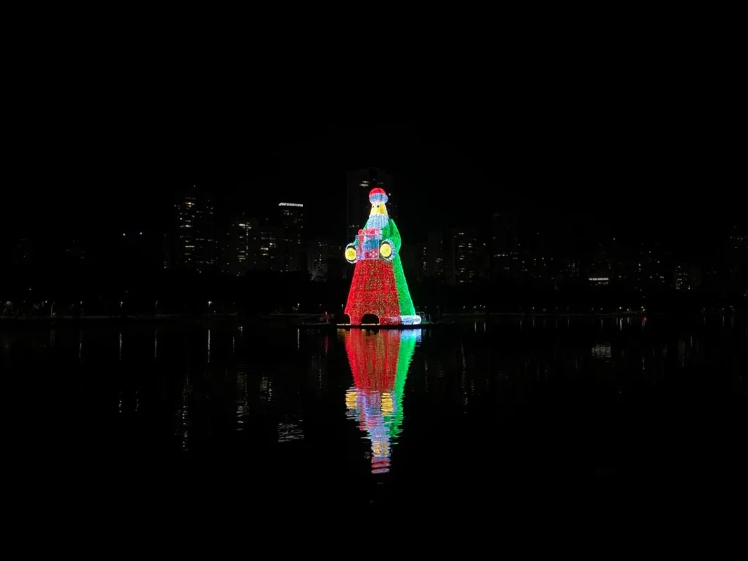 Londrina inaugurou neste domingo (30) o maior Papai Noel flutuante do mundo, uma escultura de 27 metros instalada sobre balsas no Lago Igapó 2. A estrutura, equivalente a um prédio de nove andares, será oficialmente reconhecida pelo Guinness Book na próxima sexta-feira (5), durante cerimônia marcada para as 19h.