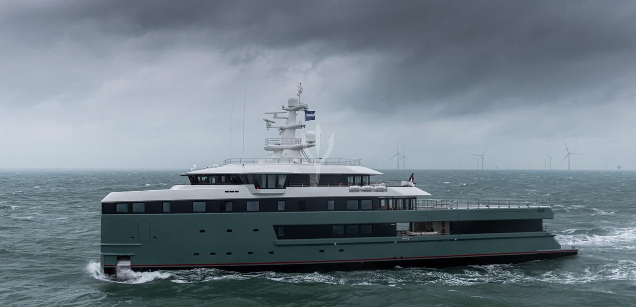 Segundo o estaleiro, a embarcação possui autonomia para até 30 dias no mar e atinge velocidade máxima de 13,5 nós. O projeto inclui ainda varandas externas, amplas áreas de circulação e infraestrutura pensada para longas expedições, sem abrir mão do conforto extremo.
