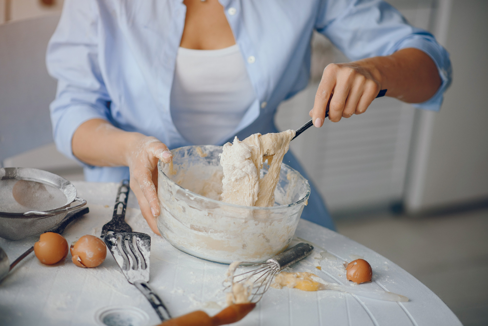 – As gemas são misturadas ao açúcar refinado, ao açúcar mascavo e à manteiga até formar um creme homogêneo.