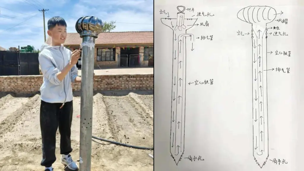 O dispositivo criado por Jia é simples e de baixo custo. Utilizando tubos de aço comprados em uma loja de ferragens e garrafas plásticas recicladas, o adolescente montou um equipamento capaz de condensar a umidade presente no ar e canalizá-la para o solo, irrigando automaticamente as raízes das árvores.