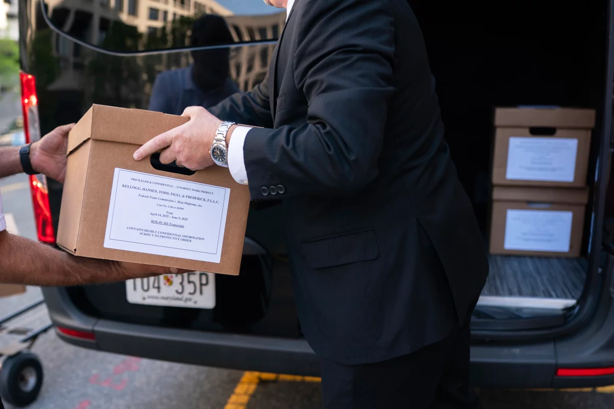 Documentos sendo levados para a audiência (Reprodução/Nathan Howard/AP)