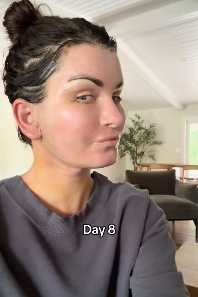 Logo após a cirurgia, Erica começou a mostrar no TikTok a evolução do pós-operatório: rosto extremamente inchado, hematomas, crostas e descamação da pele. Ela chegou a contratar uma enfermeira para auxiliá-la em casa.
