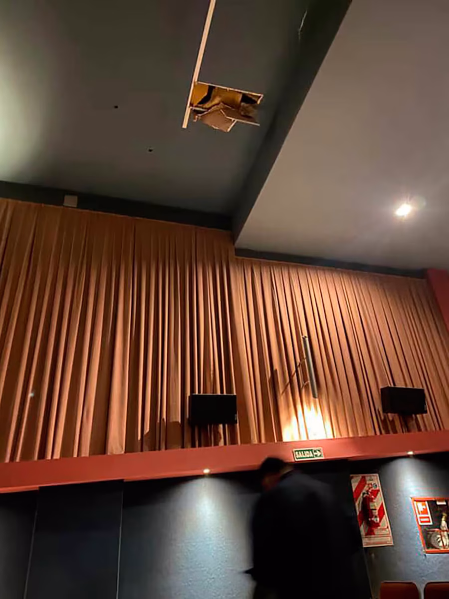 Imagens compartilhadas online mostram infiltrações e partes do forro danificadas. Até o momento, a administração do cinema não se pronunciou oficialmente sobre o caso.