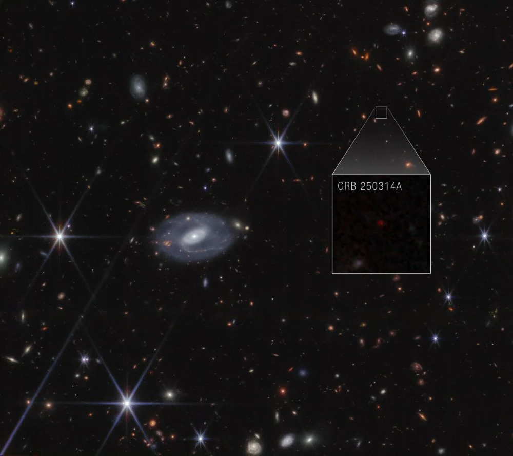 O evento, batizado de GRB 250314A, foi detectado inicialmente em março de 2025 como um intenso estouro de raios gama — um dos fenômenos mais energéticos do Universo. Pouco tempo depois, o James Webb realizou observações detalhadas e confirmou que a origem do sinal era uma estrela massiva em colapso, que explodiu quando o Universo tinha apenas 5% da idade atual.