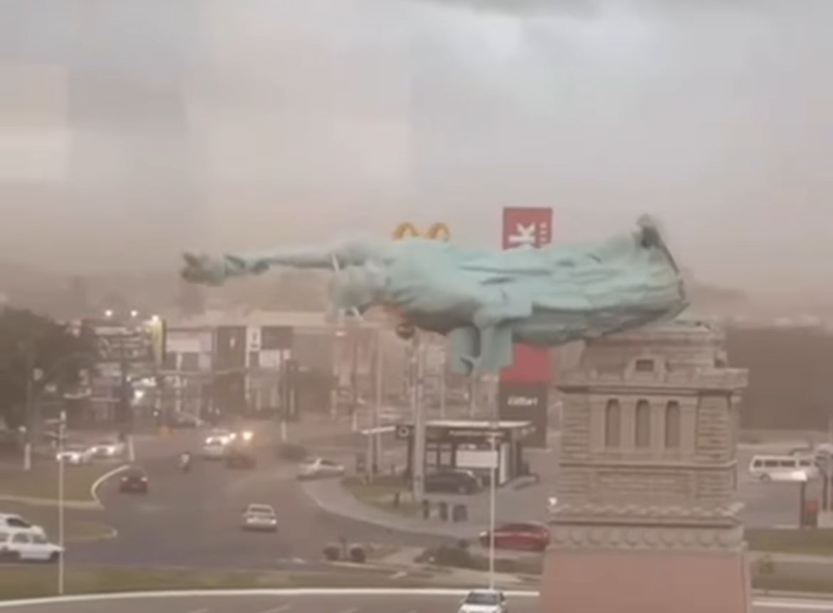 Uma forte tempestade atingiu Guaíba, na Região Metropolitana de Porto Alegre, nesta segunda-feira (15). A estátua da Havan, réplica da Estátua da Liberdade com 24 metros de altura, desabou. Os ventos ultrapassaram 90 km/h, causando a queda da estrutura em frente à megaloja Havan. Não houve registros de feridos.