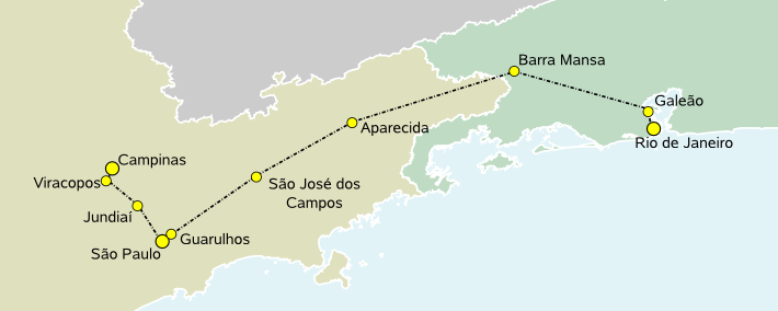 O projeto prevê uma linha de 417 km que ligará as duas maiores metrópoles do país, com estações integradas ao metrô e aos trens urbanos em ambos os estados.