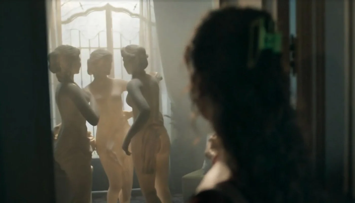 A estátua que aparece na novela é inspirada em obras reais de artistas como Botticelli, Raphael e Antonio Canova. Essas obras são baseadas nas Três Graças, figuras que vêm da mitologia grega.