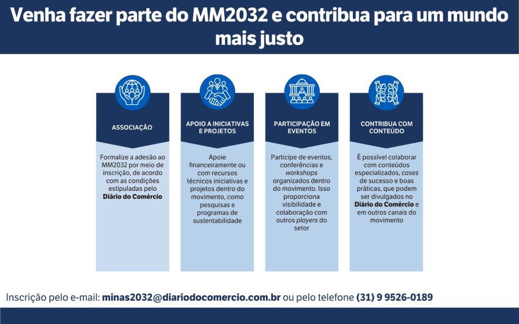 As empresas e profissionais que integram o MM2032 também têm a oportunidade de desenvolver novos negócios, aproveitando as inovações e modelos que emergem do movimento para se posicionarem como líderes no campo da sustentabilidade e da transformação digital.