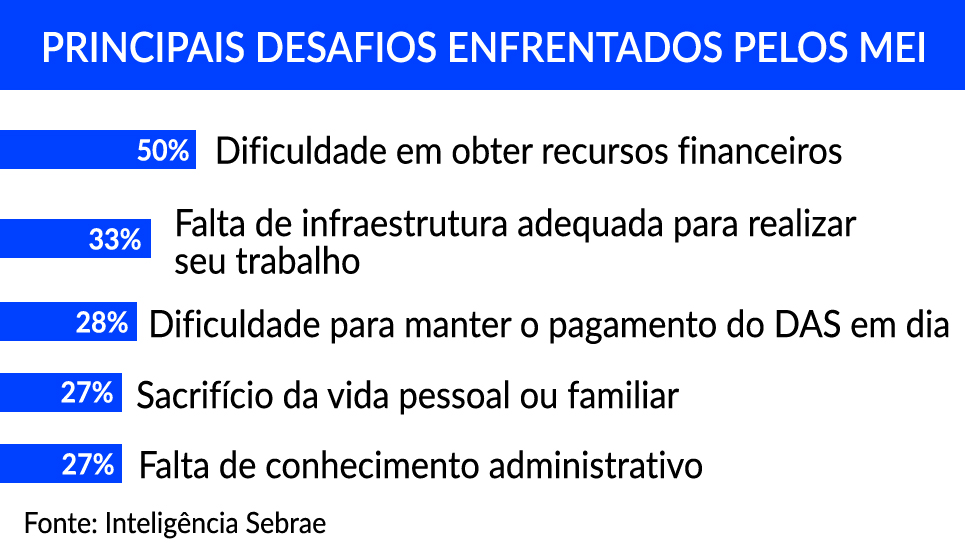 Outro problema comum, seja para o MEI ou para qualquer outro tipo de empreendedor, é misturar os gastos pessoais com os compromissos com os fornecedores, o que pode levar a dificuldades para manter o pagamento do Documento de Arrecadação do Simples Nacional (DAS) em dia. A questão foi apontada como um desafio no levantamento (28%).