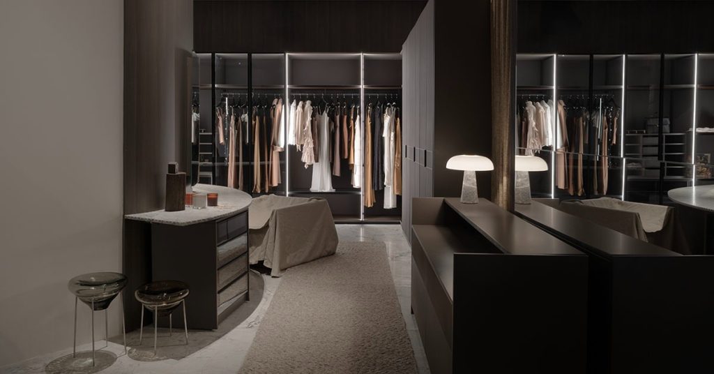 Com o Closet Dell Anno, Cris Capanema apresenta um projeto arrojado, explorando marcenaria e acabamentos de altíssimo padrão, exaltando a fluidez orgânica e a conexão com a arte.