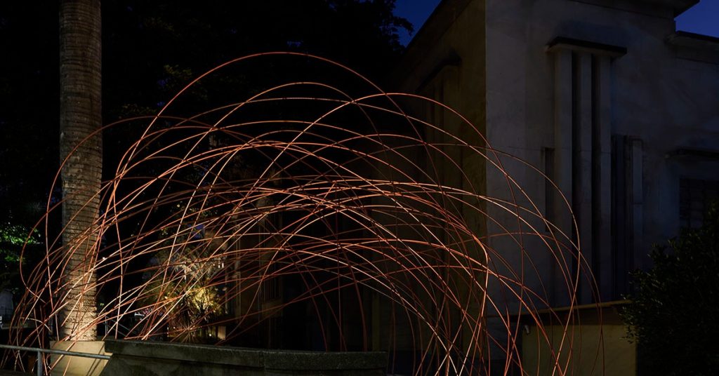 O Rizoma, de André Gibram e Antônio Grillo, é uma instalação desenvolvida com um feixe de vergalhões de aço, fornecido pela ArcelorMittal, criando um movimento que perpassa os jardins frontais do prédio, aflorando em quatro momentos distintos, sugerindo a continuidade pelos trechos submersos. A ideia é trazer à tona o material, que geralmente está presente de forma oculta nos projetos.