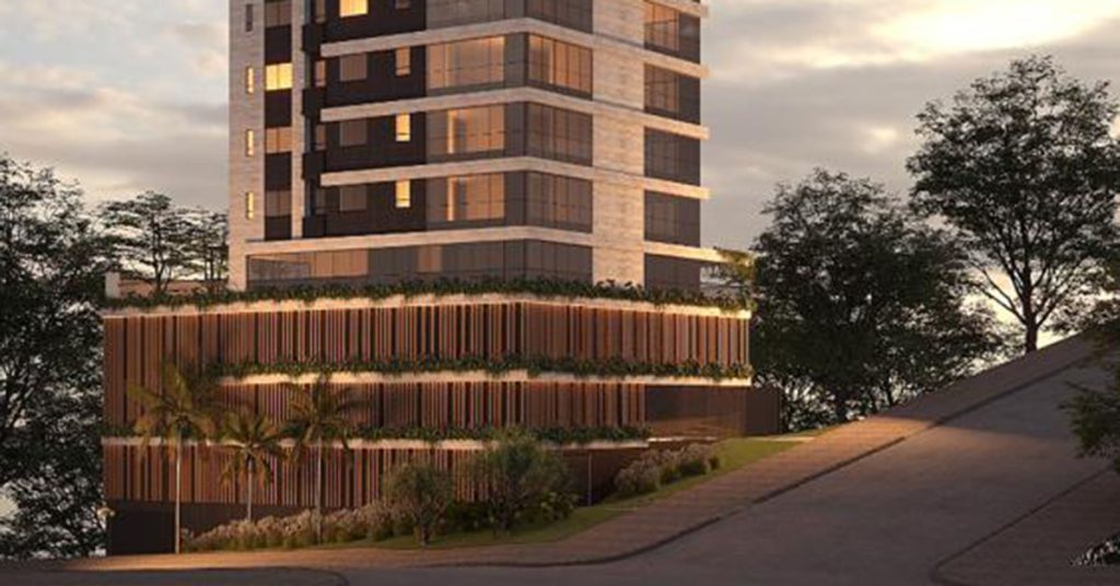 O prédio, que terá localização na rua Tomás Gonzaga esquina com Santa Catarina, em Lourdes, na região Centro-Sul da capital mineira, é um lançamento das incorporadoras URB3, Pentagna e Trena.