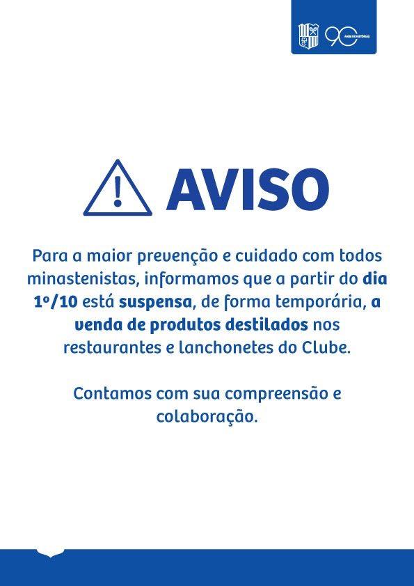 O Minas Tênis Clube suspendeu temporariamente a venda de bebidas destiladas em restaurantes e lanchonetes da instituição. A decisão, divulgada em comunicado oficial aos associados, foi tomada “para maior prevenção e cuidado com todos os minastenistas” e segue tendência já adotada por clubes em São Paulo.