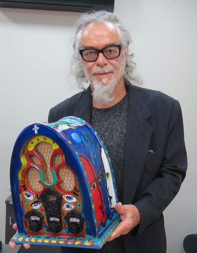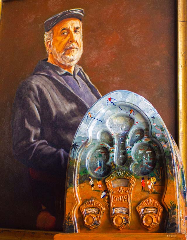 Já o Elias Layon, pintor e escultor, natural de Mariana, também na região Central do Estado, apresenta em suas obras o barroco. Em ‘Essência de Minas’, retratou, no rádio modelo Capelinha, momentos em que viveu ao lado do veículo de comunicação, como rezar o terço às 18h com a família reunida, ouvir partidas de futebol, além de períodos comuns em Minas Gerais.