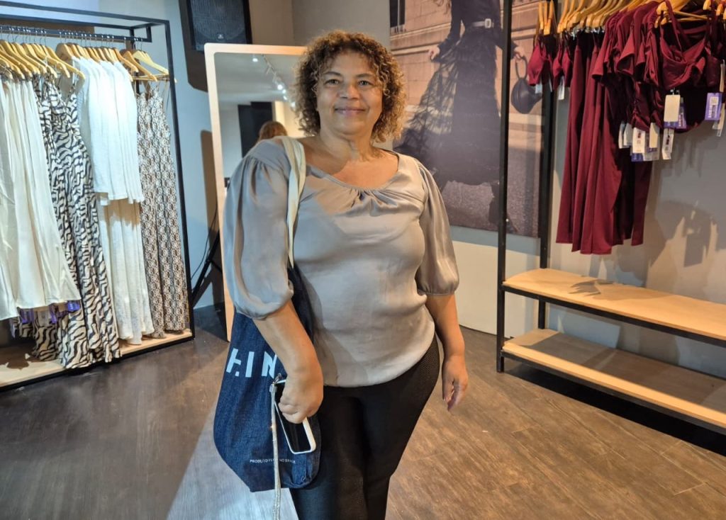 A profissional autônoma Adriana Andrade, de 55 anos, foi ao estabelecimento em busca de vestidos, shorts e camisetas. “Ao todo, meu tíquete médio é de até R$ 500. Talvez eu compre uma lembrancinha para alguém, mas vou focar mais em mim. Estou adorando aqui. Ver a peça pessoalmente é bem melhor”, disse Adriana Andrade.
