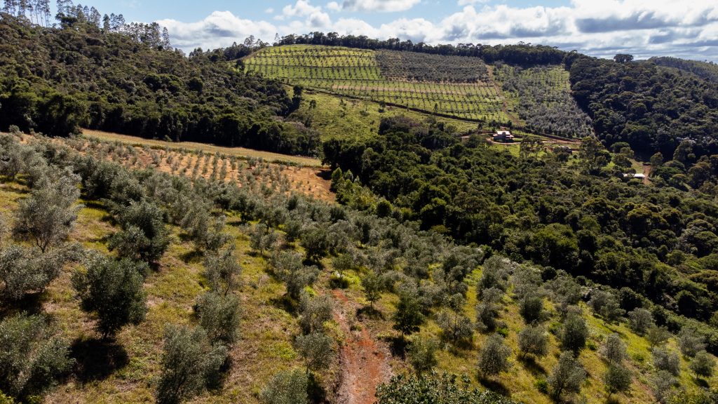O proprietário da fazenda, Moacir Nascimento, se instalou na região em 2008, buscando sossego e, ao mesmo tempo, uma área produtiva. Dos 30 hectares da fazenda, 10 são destinados à plantação de oliveira, hoje com mil plantas em idade produtiva. Além de processar as azeitonas da própria fazenda, ele também fabrica azeite de outras plantações de parceiros, que ficam próximos a sua fazenda.