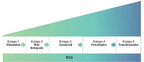 Os estágios 1 e 2 revelam a falta de integração da Organização com a Agenda ESG. Só a partir do Estágio 3 que a liderança demonstra que realmente iniciou a jornada ESG.