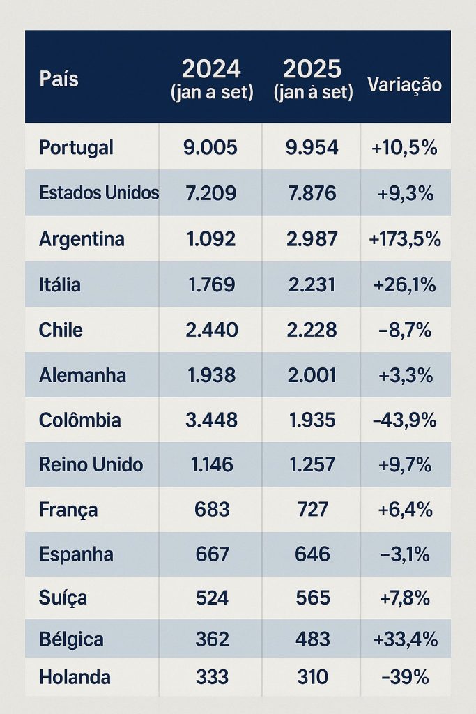 O número de turistas portugueses em Minas Gerais cresceu 10,5% entre janeiro a setembro deste ano, na comparação com o mesmo período do ano passado. Ao todo, o Estado recebeu cerca de 10 mil visitantes do país europeu. Os dados foram divulgados pela Agência Brasileira de Promoção Internacional do Turismo (Embratur) nesta quinta-feira (23), durante o lançamento do Projeto Brasis 2025-2027, em Belo Horizonte.