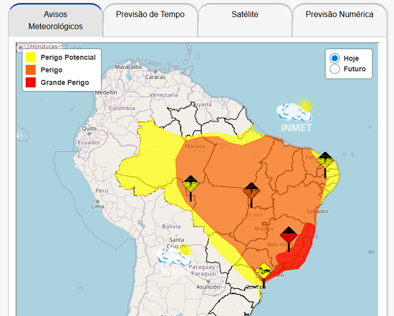 O Inmet também manteve, para esta quinta-feira (26), o alerta vermelho de “grande perigo” para chuvas intensas na região, incluindo as cidades de Juiz de Fora e Ubá, com previsão de chuva superior a 60 milímetros por hora e alto risco de alagamentos, deslizamentos e transbordamentos de rios.