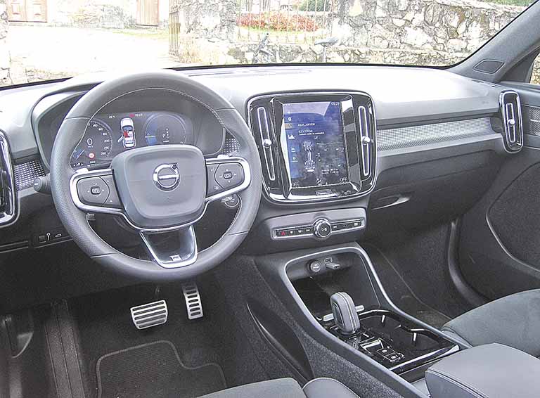 O XC40 ainda traz direção elétrica com regulagem da assistência em três níveis, independentemente da velocidade; ar-condicionado digital de duas zonas com controles em página dedicada no multimídia, funcionamento acionável pelo celular e saídas para o banco de trás; chave presencial para abertura e fechamento das portas por toque na maçaneta e partida por botão; abertura e fechamento elétrico do porta-malas com sensor ao movimento do pé sob o para-choque traseiro; carregamento de celular por indução; teto solar panorâmico com acionamento programável; bancos dianteiros com regulagens elétricas, ajuste lombar, extensores para as pernas e memória para dois motoristas.