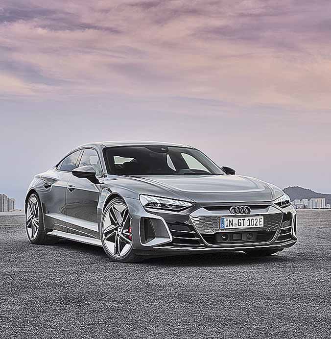 Motores elétricos e tração quattro –O novo modelo totalmente elétrico da Audi oferece desempenho dinâmico nas duas versões de motor: o e-tron GT quattro acelera de zero a 100 km/h em 4,1 segundos, enquanto o modelo RS precisa de 3,3 segundos. A velocidade máxima é de 245 km/h e 250 km/h, respectivamente.