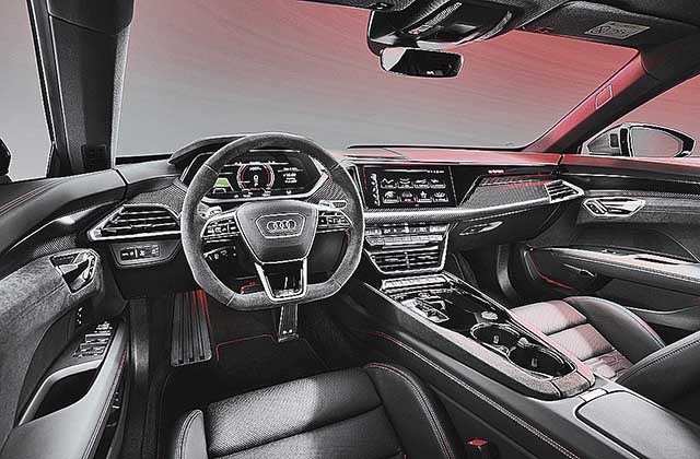Som esportivo -A Audi informou que compôs um som único para o e-tron GT quattro. O som esportivo e-tron compreende duas unidades de controle e amplificadores no compartimento de bagagem.