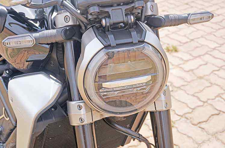 O semicírculo de neon do farol se repete, na forma, no contorno do velocímetro e na luz traseira. O guidão e o tanque de combustível também são tradicionais. O restante da motocicleta segue um rigor tecnológico sem excessos e acaba chamando a atenção pela limpeza do desenho, mesmo sendo uma naked.
