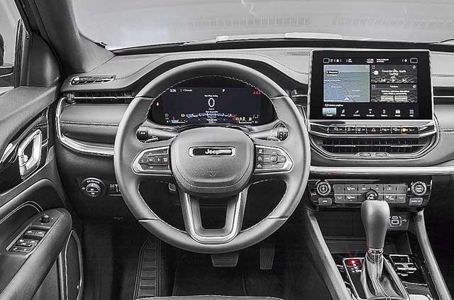 O SUV também conta com um novo quadro de instrumentos com 10,25 polegadas para as versões Limited, Trailhawk e Série S (existem ainda a de 3,5 polegadas na versão Sport e 7 polegadas na Longitude e 80 Anos).