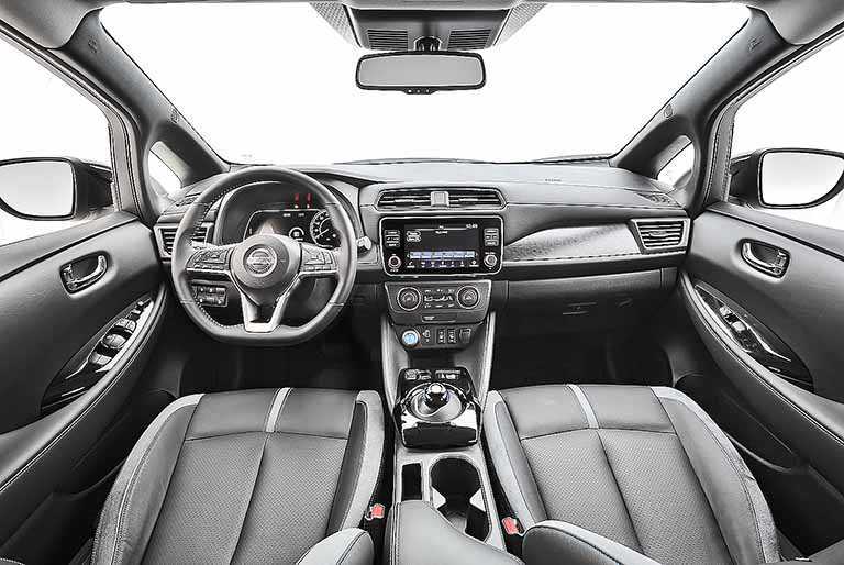 Tecnologias – Além do e-Pedal, o Nissan Leaf está equipado com um conjunto de tecnologias de segurança e de auxílio à condução: alerta de mudança de faixa, sistema de prevenção de mudança de faixa, assistente de frenagem de emergência, controle de velocidade adaptativo, sistema de advertência de ponto cego, visão 360° com detector de movimento, alerta de atenção do motorista, sistema de monitoramento de pressão dos pneus e alerta de tráfego cruzado traseiro.
