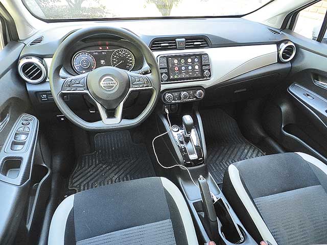 No interior, inúmeras peças são as mesmas usadas no Nissan Kicks. A maioria dos botões, as maçanetas, alavancas, saídas de ar, volantes, painel de instrumentos, console central e todos os equipamentos contidos no Versa são idênticos.