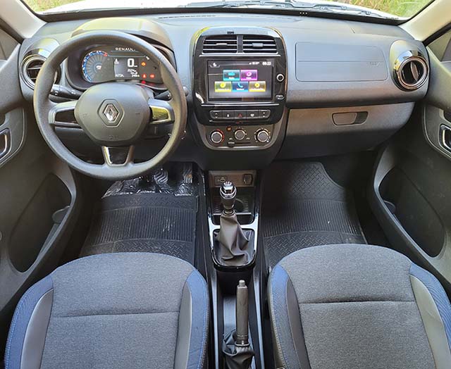 O Kwid é um subcompacto de entrada com todas as vantagens e limitações deste segmento. Todos os comandos estão à mão, rapidamente alcançados e manuseados.